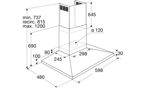 ++ Breedte: 60 cm ++ Afzuigkracht (hoogste stand): 445 m³/h ++ Geluidsniveau (Maximum): 62 dB(A) ++