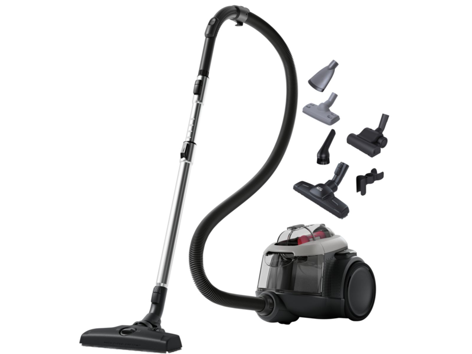 De ergonomisch vormgegeven AEG ANIMAL 6000 stofzuiger zonder zak, met geavanceerde cycloontechnologie, combineert topprestaties met uiterst precies leegmaken. Hij is geleverd met een kit voor het verwijderen van haren van huisdieren uit bekleding en gestoffeerde meubels.