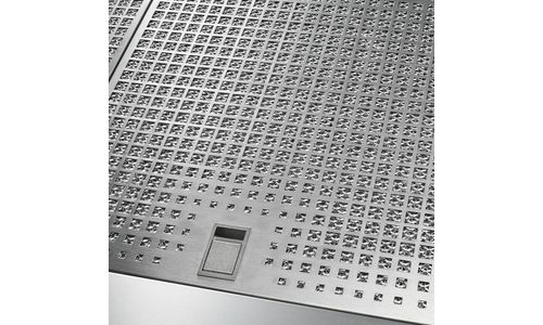 Een efficiënte vetfilter met hoogwaardige prestaties, achter een elegante roestvrijstalen cover. Zowel de filter als de cover zijn geheel wasbaar, waardoor hun prestaties behouden blijven.