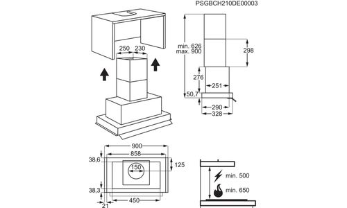 Inbouwgroep 90 cm voor hangkast, 760m³/h TouchControl, LEDstrip, glas/inox, H²H