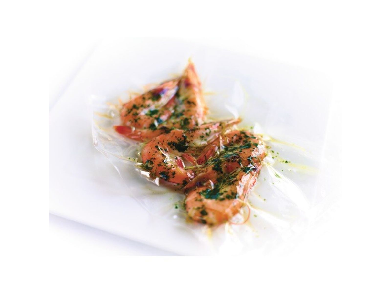 Sous-vide zakjes. Kan worden gebruikt tot 120°C voor koken en tot -40°C voor bewaren (25 + 25 zakken per pak, 2 maten – 30 × 20 cm en 35 × 25 cm)
