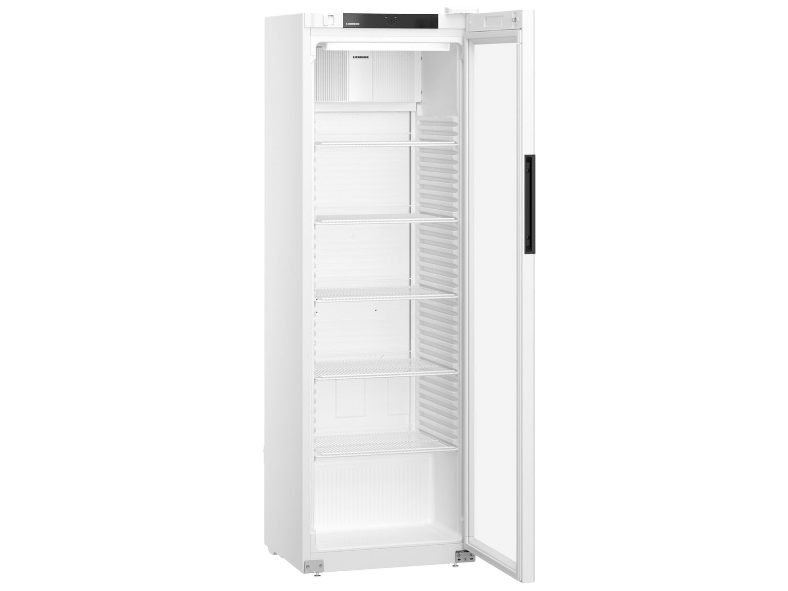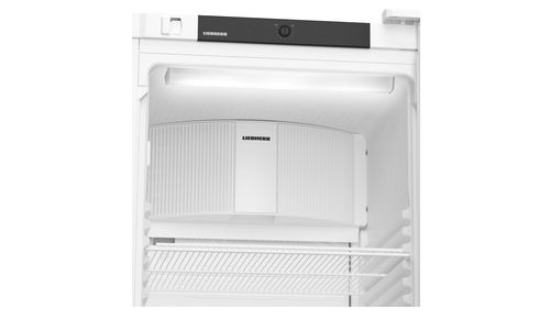 Deze Liebherr flessenkoelkast heeft een temperatuurbereik van +2°C tot +9°C. De glasdeur sluit vanzelf waardoor een openstaande deur tot het verleden behoort. Voor het comfortabel vullen van de koelkast blijft de deur bij een openingshoek van meer dan 90° open staan. Plafondverlichting zorgt dat de inhoud altijd goed zichtbaar is. De versterkte draagroosters met geïntegreerde uittrekstop zijn belastbaar tot 45 kg en de temperatuur kan worden afgelezen via een analoog display in het interieur.