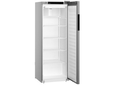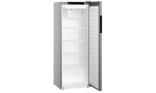 Deze staalgrijze Liebherr flessenkoelkast heeft een temperatuurbereik van +1°C tot +15°C. De deur sluit vanzelf waardoor een openstaande deur tot het verleden behoort. Voor het comfortabel vullen van de koelkast blijft de deur bij een openingshoek van meer dan 90° open staan. Plafondverlichting zorgt dat de inhoud altijd goed zichtbaar is. De versterkte draagroosters met geïntegreerde uittrekstop zijn belastbaar tot 45 kg en de temperatuur kan direct via het digitale display in de deur worden afgelezen.