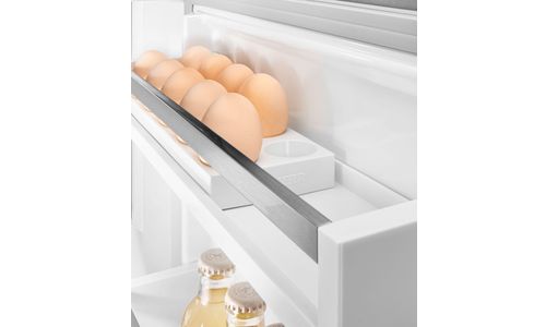 Het deel- en onderschuifbare glasplateau kan op iedere hoogte worden geplaatst en biedt daarmee maximale flexibiliteit. Zo vinden ook hoge karaffen snel een plaats in de koelruimte.