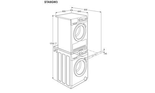 Stapelkit met uittrekbaar rek voor wasmachines en drogers. Met muuranker.