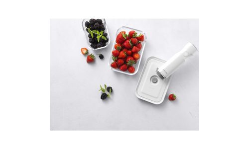 Koop verse producten, kook voor en bewaar de rest van de heerlijke guacamole die je hebt gemaakt voor later: de drie containers uit de glazen set in de maten S, M en L zijn klaar voor gebruik. De handige, draadloze vacuümpomp zuigt op betrouwbare wijze lucht uit de containers en bewaart zorgvuldig smaken, voedingsstoffen en vitamines. Uw voedsel en maaltijden blijven tot vijf keer langer vers in vergelijking met conventionele niet-vacuümbewaaroplossingen!