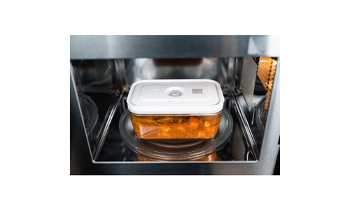 Nog een highlight: de glazen bakjes zijn niet alleen geschikt voor de koelkast en vriezer: dankzij het hoogwaardige borosilicaatglas kun je de bakjes van de set zonder deksel in de oven gebruiken. Zo bereid je gerechten perfect voor in de oven, doe je ze in de bak, koel of vries je ze vacuüm verpakt en warm je ze later op. En de restjes? Je kunt ze gewoon opwarmen in de magnetron of in de oven. Alle containers in de set zijn te koppelen aan de ZWILLING Culinary World App door middel van de QR-code op de deksels. Zo heb je altijd een overzicht van je opgeslagen etenswaren. Goed georganiseerd – met de glazen set van FRESH & SAVE!