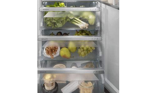 De BioFresh laden hebben een comfortabele zelfsluiting met zachte demping, de lade trekt zichzelf laatste 3 cm zachtjes dicht. De laden zijn bij 90° deuropening volledig uittrekbaar en uit te nemen.