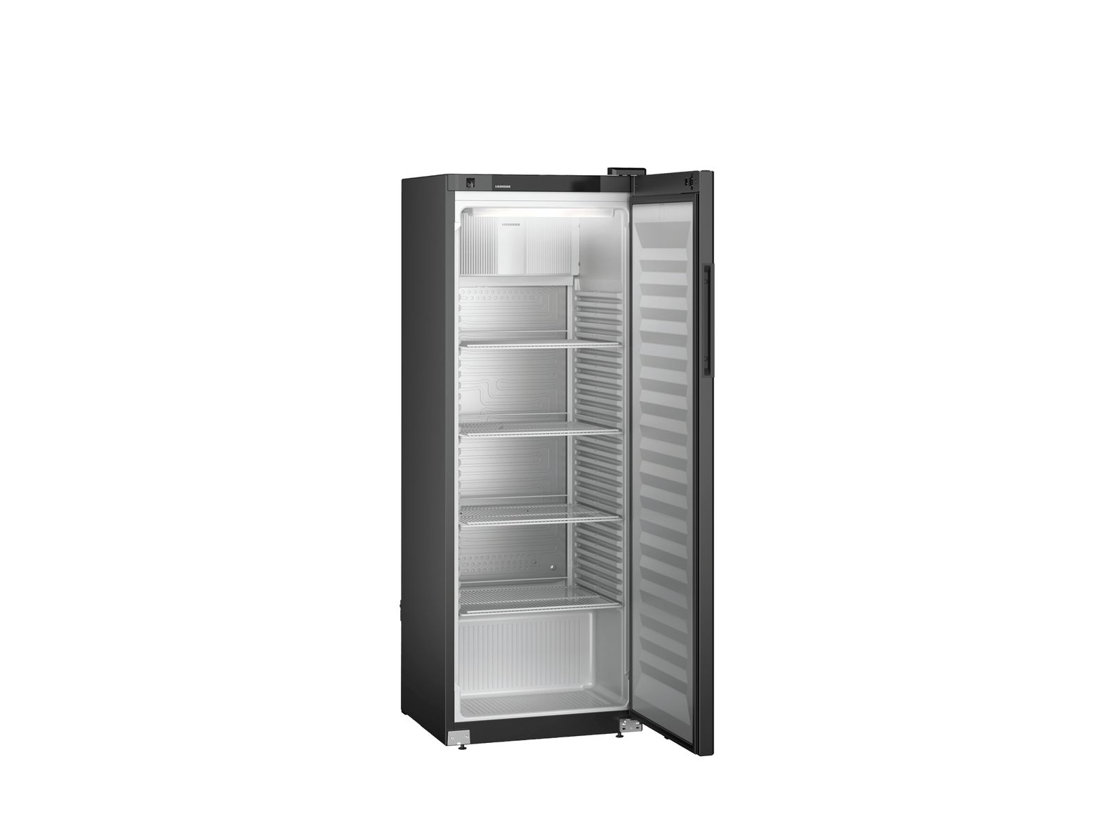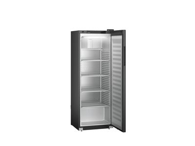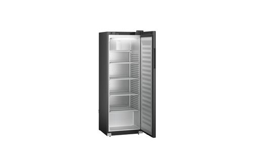 Deze zwarte Liebherr flessenkoelkast heeft een temperatuurbereik van -2°C tot +15°C. De deur sluit vanzelf waardoor een openstaande deur tot het verleden behoort. Voor het comfortabel vullen van de koelkast blijft de deur bij een openingshoek van meer dan 90° open staan. Plafondverlichting zorgt dat de inhoud altijd goed zichtbaar is. De versterkte draagroosters met geïntegreerde uittrekstop zijn belastbaar tot 45 kg en de temperatuur kan direct via het digitale display in de deur worden afgelezen.