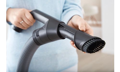 Snoer, zuigbuis en -slang zorgen samen voor een bijzonder grote actieradius. Zo kunt u ook gemakkelijk grotere oppervlakken stofzuigen zonder dat u veel van stopcontact hoeft te wisselen.