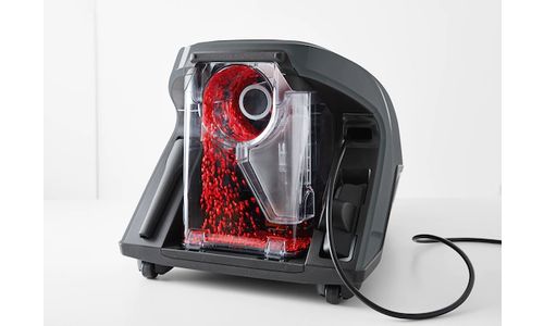 De Vortex-technologie wekt een enorme stromingssnelheid op van meer dan 100 km/u. In combinatie met de zeer compact ontworpen zuigmond en de gunstige luchtstroming levert de stofzakloze stofzuiger een eersteklas reinigingsprestatie. Grof vuil en fijnstof worden daardoor uitstekend van elkaar gescheiden. Het grove vuil belandt in het transparante stofreservoir, het fijnstof in een apart reservoir met fijnstoffilter.