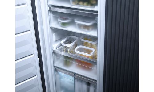 Integreerbare diepvriezer NoFrost en 8 vrieslades op uittrekbare telescopische rails voor max. comfort.
