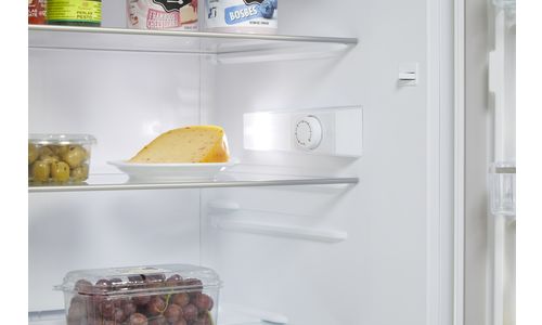 Het koelgedeelte is voorzien van 2 legplateaus van veiligheidsglas, waarvan 1 in hoogte verstelbaar is. Groenten en fruit bewaar je in de brede transparante groentelade onderin de koelkast. Tot slot is de KVV856WIT voorzien van een deur met verwisselbare draairichting.