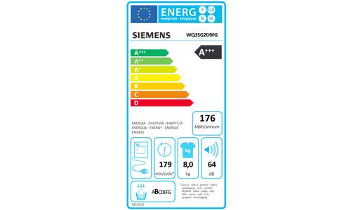 | Droogtijd (volledig geladen katoen): | 179 min/cycle |