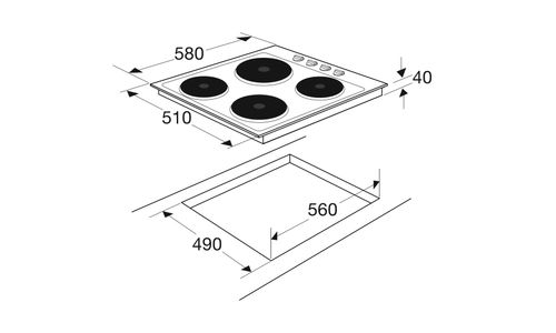++ Type kookplaat: Elektrisch ++ Breedte: 55 cm ++ Aantal kookzones: 4 ++
