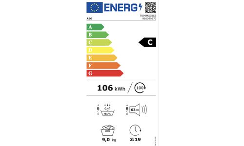 | Droogtijd (volledig geladen katoen): | 199 min/cycle |