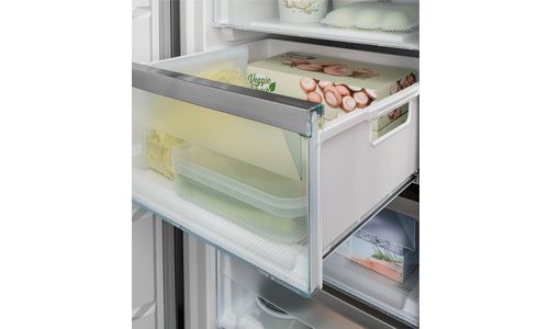 Het verplaatsen van ingevroren producten is niet nodig. In iedere lade kunnen producten snel en vitaminevriendelijk worden ingevroren. De rondom gesloten diepvriesladen met transparante voorzijde zijn extra hoog en uitneembaar. Daarmee garanderen zij een optimaal zicht op de producten in de lade.  Iedere lade heeft 2 handgrepen waarmee de lade veilig kan worden uitgenomen.