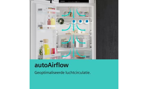 Het AutoAirflow-systeem verdeelt de lucht gelijkmatig doorheen de hele koelkast, zodat alle niveaus een constante temperatuur behouden. Je producten worden sneller koel en blijven lekker vers.