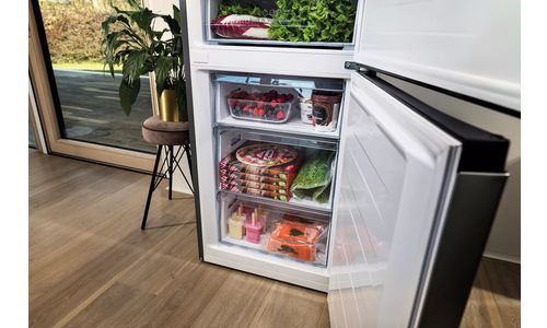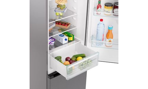 De KCV285NRVS van ETNA is een vrijstaande design koel-vriescombinatie in een stijlvolle RVS uitvoering. Deze koel-vriescombinatie is niet alleen een blikvanger, met een ruime inhoud van 300 liter bied hij ook het ultieme gemak in de keuken. Zo is deze koel-vriescombinatie voorzien van een FastFreeze functie waarmee eten supersnel wordt ingevroren. Dit zorgt ervoor dat producten zo snel mogelijk op de juiste temperatuur komen en hierdoor de voedingstoffen beter behouden blijven. Het koelgedeelte heeft een CrispZone lade met speciale luchtvochtigheidsregeling zodat groenten en fruit langer vers blijven. MultiFlow 360° luchtcirculatie zorgt tevens voor een gelijkmatige koeling en temperatuur in het koelgedeelte. Zo heb je altijd het perfecte klimaat in je koelkast, voor het zo lang mogelijk vers houden van je producten. Dankzij No-Frost Plus hoef je de ruime ETNA vriezer nooit meer te ontdooien en wordt condensvorming in het koelgedeelte tegengegaan. Bovendien zijn dankzij de heldere LED verlichting alle schappen en lades goed verlicht.