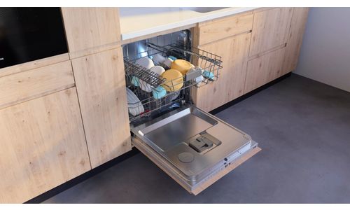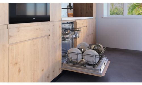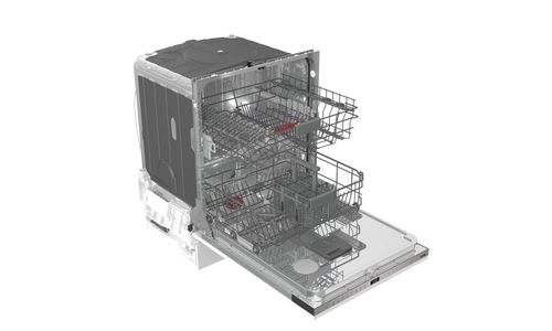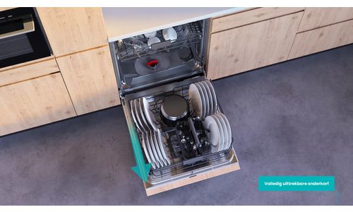 Aan gemak is ook gedacht. De bestekmand is deelbaar en kan flexibel geplaatst worden in de onderste korf. De bovenste korf is met belading in hoogte verstelbaar. Zo kun je met gemak 14 couverts kwijt.