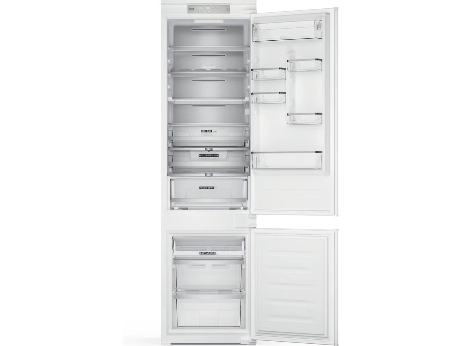 Kenmerken van deze geïntegreerde Bauknecht koel/vriescombinatie: ventilator die zorgt voor een gelijkmatige luchtstroom aan de binnenkant van uw apparaat, voor een betere ventilatie. Hoog apparaat om aan de wensen van uw familie te voldoen: Bij het openen van de deur corrigeert de Active Fresh-technologie direct de temperatuur zodat voedsel optimaal bewaard wordt. Vriezer onderin, zodat de vriezer in het onderste deel van uw apparaat is gepositioneerd. Vakantiemodus functie, bespaar op uw energieverbruik wanneer u niet thuis bent. Robuuste, elegante en veilige glazen legplateaus. Handig flessenrek om uw flessen veilig op te bergen. Wit.