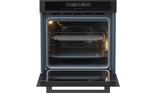 De oven heeft een XL-inhoud van 72 liter en is voorzien van zijrekjes met 5 insteekniveaus en dubbele binnenverlichting. Het multifunctionele ovensysteem inclusief turbo-hetelucht beschikt over 12 ovenfuncties en een temperatuurbereik van 30 – 250 °C.