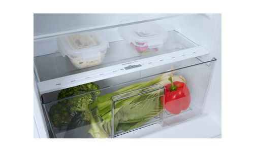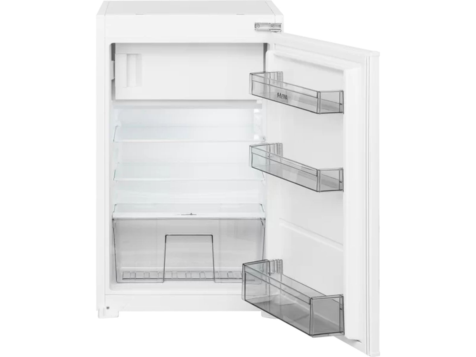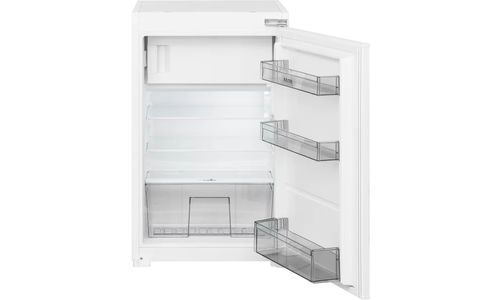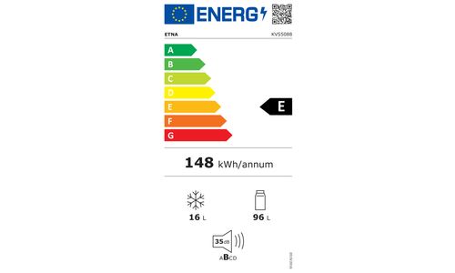 De ETNA KVS5088 is een inbouw koelkast met vriesvak die dankzij het stille geluidsniveau van slechts 35 decibel ideaal is voor een open keuken of leefruimte. De koelkast met vriesvak wordt ingebouwd met het sleepdeursysteem en heeft een deur met verwisselbare draairichting. Zo kun je bij het plaatsen zelf bepalen welke draairichting de deur moet hebben. ETNA zorgt er voor dat je koelkast perfect aansluit bij het ontwerp van de keuken. De KVS5088 heeft een ruim koelgedeelte met een netto inhoud van 96 liter, drie glazen legplateaus met lekrand en een groentelade met luchtvochtigheidsregeling. Het vriesgedeelte heeft een netto inhoud van 16 liter en een invriescapaciteit van 2,6 kg per 24 uur. De FastFreeze functie zorgt ervoor dat je voedingsmiddelen extra snel invriest en voedingsstoffen beter bewaard blijven.