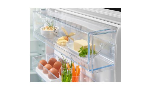 Dankzij TwinTech® No Frost hoef je je vriezer nooit meer te ontdooien. Het dubbele koelsysteem houdt eten 60% vochtiger dan koelkasten met één verdamper.* Omdat het geen droge lucht gebruikt, behoudt het de ideale vochtigheidsgraad en droogt eten niet uit.*