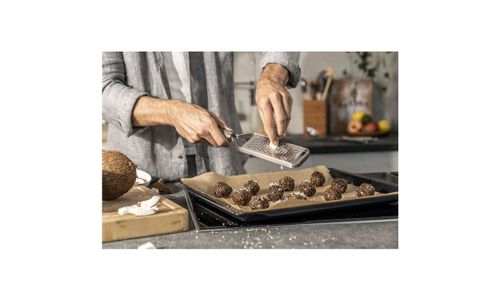 Rasp parmezaan op je spaghetti. Chocolade flakes op je cappuccino. Verfijn je saus met knoflook of chili. Met de ZWILLING PRO fijne rasp kun je gemakkelijk je favoriete eten en drinken verfijnen. Deze rasp bevat bijna 300 jaar ervaring in de productie van scherpe messen voor bijzonder scherpe tanden. Wat is de innovatieve rasptechnologie in twee richtingen? Dat is heel eenvoudig: De tanden zijn in beide richtingen scherp, zodat je in beide richtingen kunt raspen. Dit is sneller en bespaart energie, zodat je moeiteloos kunt raspen als een echte professional.