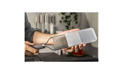 Het robuuste roestvrijstalen frame en handvat zorgen voor stabiliteit en veiligheid tijdens het raspen. De ergonomisch gevormde en slipvaste fijne rasp ligt goed en comfortabel in de hand. Dankzij de antislip rubberen basis kun je je ingrediënten rechtstreeks op borden en in kommen raspen zonder uit te glijden.