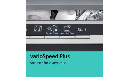 Was en droog je vaat tot wel drie keer sneller, maar met hetzelfde brandschone resultaat. Dankzij varioSpeed Plus kun je altijd kiezen voor versneld afspoelen, zelfs wanneer de cyclus al bezig is. En het mooiste moet nog komen: je kunt varioSpeed Plus eenvoudig activeren en bedienen via de Home Connect-app op je smartphone of tablet. Slimmer kan bijna niet!