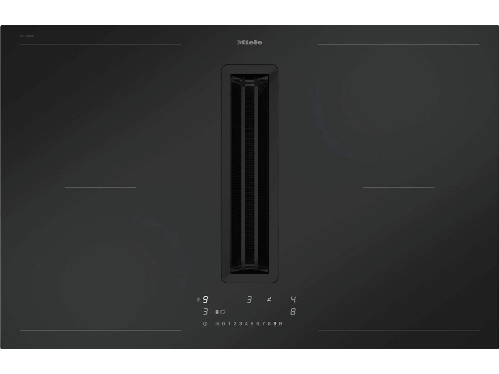 Inductiekookplaat met geïntegreerde dampafvoer ?en MattFinish met 2 extra grote PowerFlex XL-kookzones voor luchtafvoer