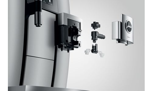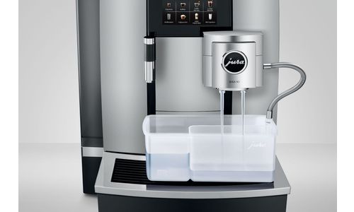Het onderhoud van de GIGA X3 gaat net zo gemakkelijk, logisch en intuïtief als de bediening ervan. Originele JURA onderhoudsproducten en geïntegreerde spoel- en reinigingsprogramma's zorgen met één druk op de knop voor TÜV-gecertificeerde hygiëne. De melksysteemreiniging is net zo doordacht. Volautomatisch en gestart door een touch op het display garandeert deze perfecte reinheid in de omgang met melk. De massieve combi-uitloop kan in een handomdraai worden gedemonteerd. De daarin vooraan geplaatste melkuitlopen zijn gemakkelijk toegankelijk en kunnen indien nodig zeer eenvoudig worden vervangen.
