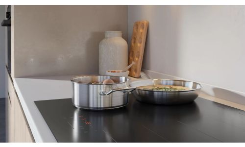 Een praktische en compacte inductiekookplaat met net dat beetje extra: de ETNA KIF360ZT. Deze 60 cm brede kookplaat past in een standaard nis en is daarom een makkelijk alternatief voor jouw bestaande keuken (met standaard nis). Het model is voorzien van power management voor 1- of 2-fase aansluiting. Om maximaal gebruik te maken van de vermogens van de zones wordt een 2-fase aansluiting met een aansluitwaarde van 7400 watt geadviseerd. Ben je niet in de gelegenheid aanpassingen te doen in jouw meterkast dan is dit model ook aan te sluiten op 1-fase met een normaal geaard stopcontact. Aan jou de keus!