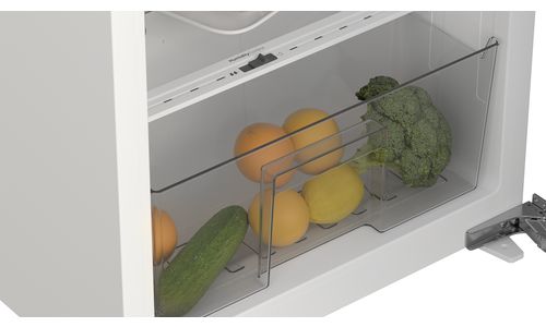 Het koelgedeelte heeft een netto inhoud van 154 liter en is voorzien van vier glazen legplateaus van veiligheidsglas en een handige groentelade met luchtvochtigheidsregeling. De deur heeft een verwisselbare draairichting. Zo kun je voor het plaatsen bepalen welke draairichting de deur moet hebben. De ETNA KKD7102T is een inbouw koelkast die wordt geïnstalleerd met het deur-op-deursysteem voor eenvoudige installatie. Dit model is voorzien van zelfsluitende deur vanaf 20°. Blijft de deur toch te lang open staan? Dan geeft de koelkast een alarmsignaal af. Ook is het model voorzien van een alarm bij te hoge temperatuur. Tot slot is de ETNA KKD7102T voorzien van SuperCool functie om jouw boodschappen snel op de juiste temperatuur te brengen.