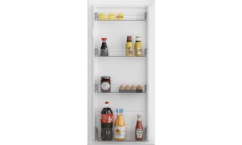 Het koelgedeelte heeft een netto inhoud van 193 liter en is voorzien van vijf glazen legplateaus van veiligheidsglas en een handige groentelade met luchtvochtigheidsregeling. De deur heeft een verwisselbare draairichting. Zo kun je voor het plaatsen bepalen welke draairichting de deur moet hebben. De ETNA KKD7122T is een inbouw koelkast die wordt geïnstalleerd met het deur-op-deursysteem voor eenvoudige installatie. Dit model is voorzien van zelfsluitende deur vanaf 20°. Blijft de deur toch te lang open staan? Dan geeft de koelkast een alarmsignaal af. Ook is het model voorzien van een alarm bij te hoge temperatuur. Tot slot is de ETNA KKD7122T voorzien van SuperCool functie om jouw boodschappen snel op de juiste temperatuur te brengen.