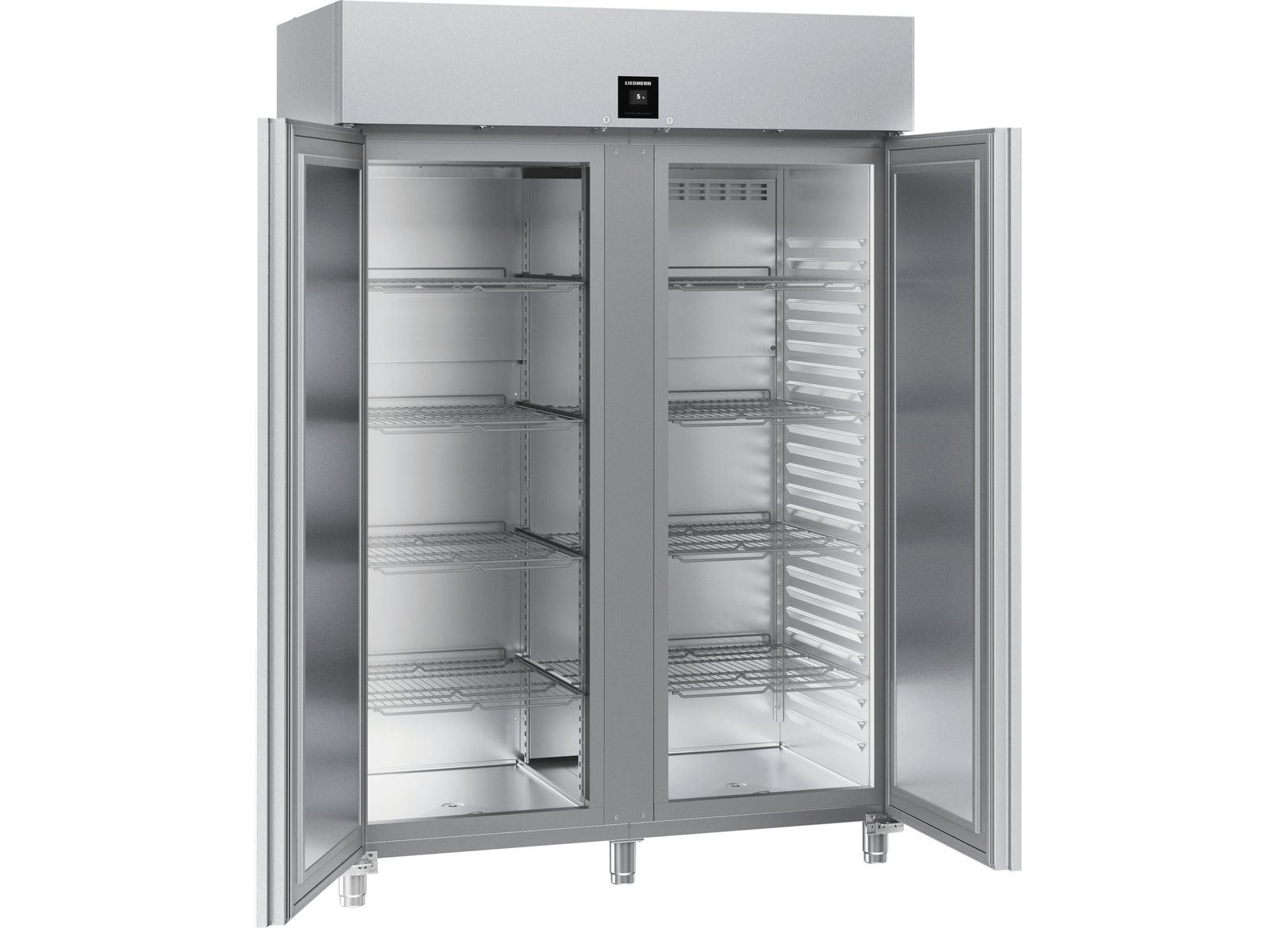 Deze Liebherr in de Performance serie biedt ruim 1300 liter koelruimte met GN 2/1 interieur. Het temperatuurbereik is nauwkeurig instelbaar tussen de -2°C en +15°C. De volledig edelstalen kast is snel schoon te maken dankzij de voorgevormde ribben in de chroomnikkelstalen binnenkuip.