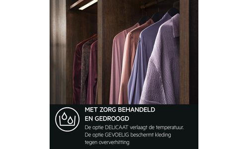 Antikreuk-technologie droogt je kleding gelijkmatig, voor minder kreuken