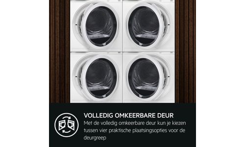 De volledig omkeerbare deur geeft je de keuze uit vier verschillende posities voor de greep. Dus of je nu je apparaten op elkaar stapelt, of ze naast elkaar zet, je kunt de deur openen in de richting die jou het best past.