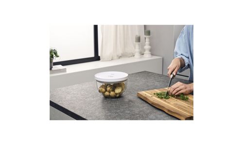 Deze kom van 18 cm is perfect voor salades, desserts en zelfs pastagerechten. Je kunt ze voorbereiden, opwarmen in de oven of magnetron en opdienen in stijl. Restjes kun je vacuüm verpakken en in de koelkast of vriezer bewaren - je eten blijft tot vijf keer langer vers*.