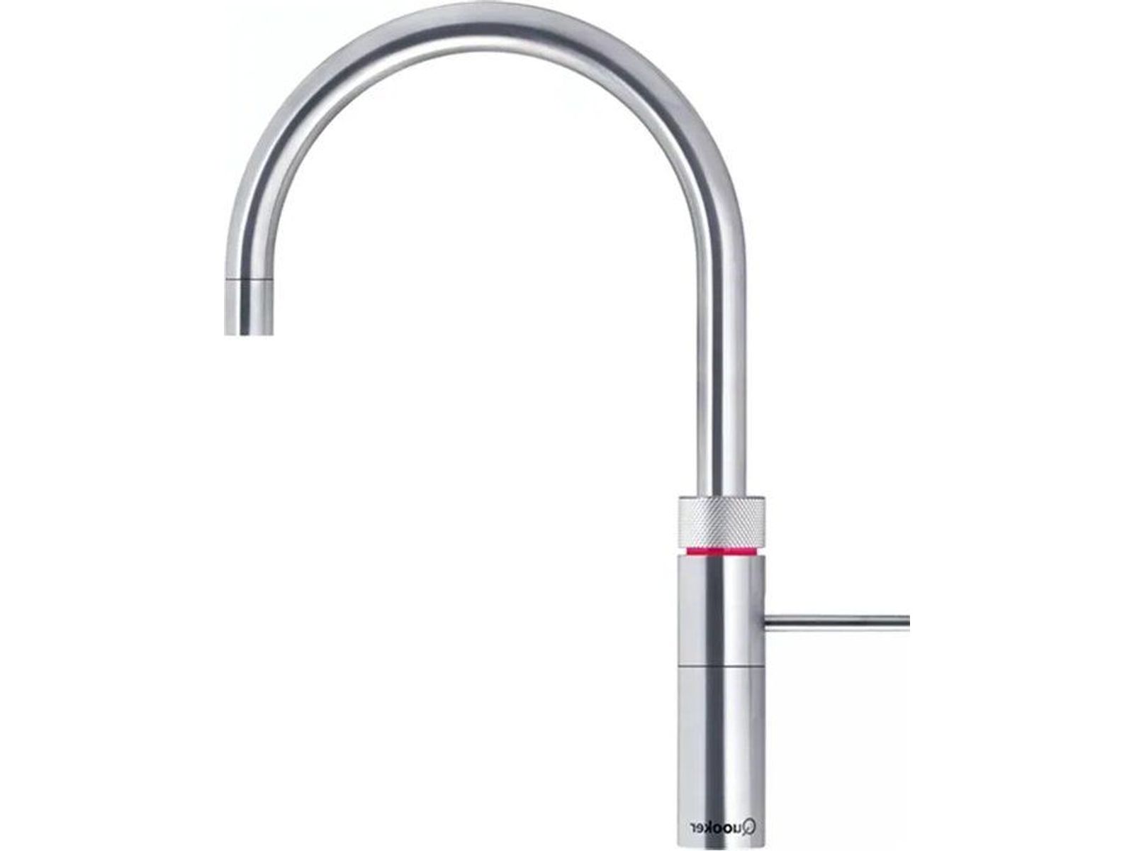 Een Quooker-systeem bestaat uit een kraan op het aanrecht en een reservoir in de kast eronder.