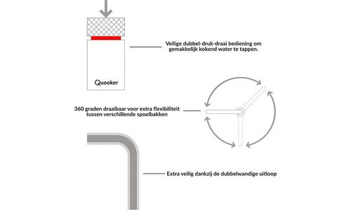 Een Quooker-systeem bestaat uit een kraan op het aanrecht en een reservoir in de kast eronder.