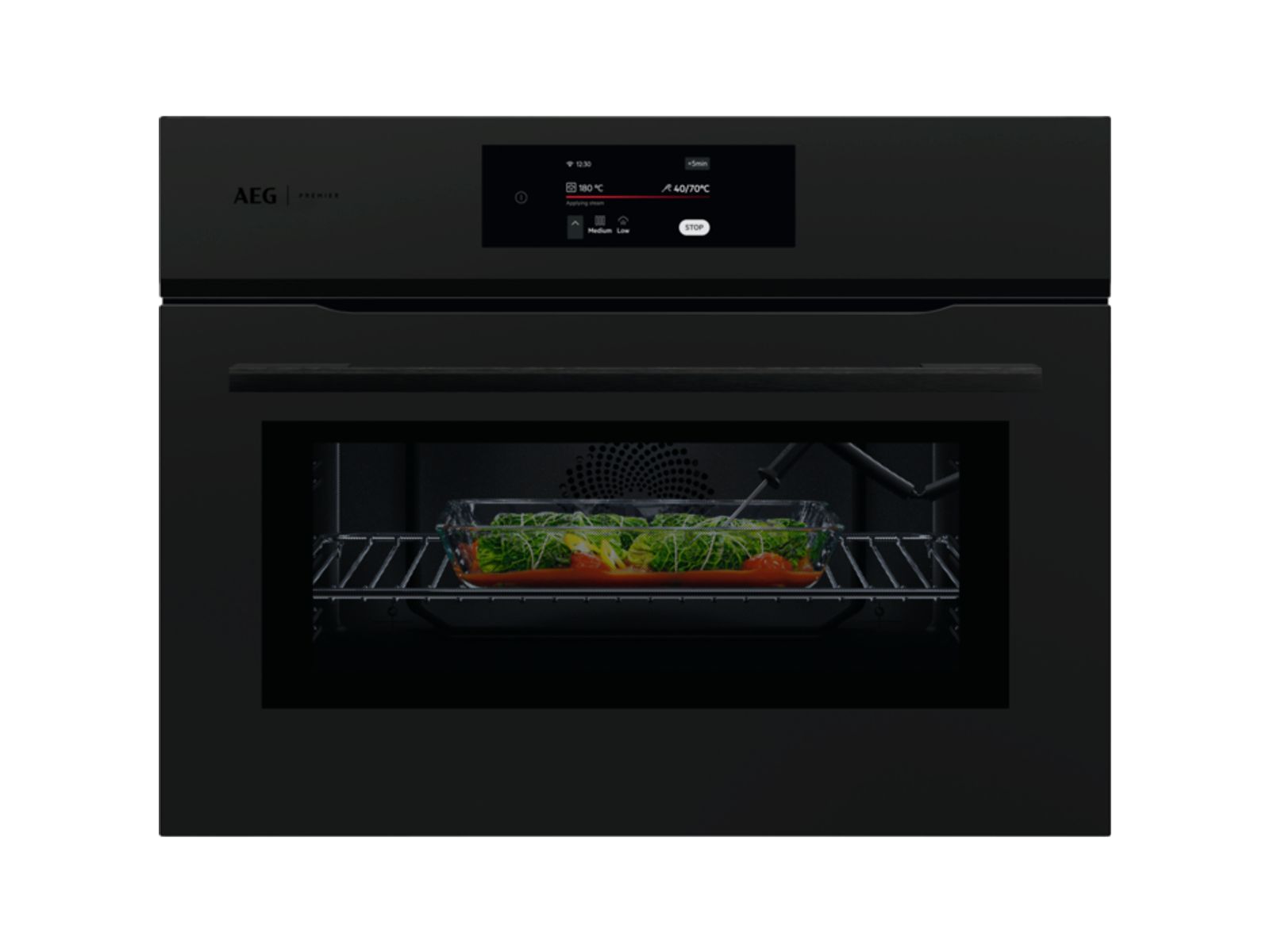 In de SteamBake multifunctionele oven wordt tijdens het bakken stoom toegevoegd. Gerechten krijgen een betere kleur en korst en worden gelijkmatig verwarmd, zonder dat je de schaal of het gerecht hoeft te draaien.