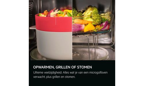 Alles wat je van een microgolf verlangt, plus een grillfunctie om je gerechten een heerlijk knapperig korstje te geven. Met de geïntegreerde SteamSet bereid je in een handomdraai gezonde maaltijden in de microgolf.