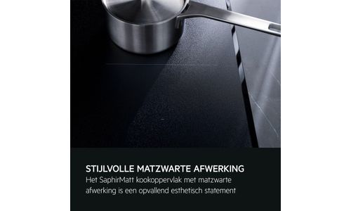 Het SaphirMatt®-glas biedt superieure bescherming tegen krassen in vergelijking met onze standaard keramische kookplaten. De elegante zwarte matte afwerking is bestand tegen vingerafdrukken en vlekken – waardoor jouw kookplaat er langer als nieuw blijft uitzien.
