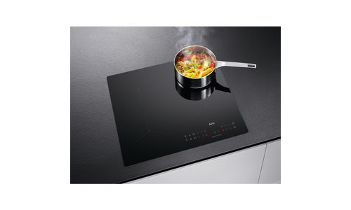 Kookplaat en afzuigkap, verbonden: AEG 5000 inductie met Hob2Hood®. De ventilatorsnelheid wordt automatisch geoptimaliseerd op basis van de warmte van de kookplaat. Profiteer van krachtige afzuiging tijdens het aanbraden en een stillere extractie tijdens het sudderen. Zonder een vinger uit te steken.
