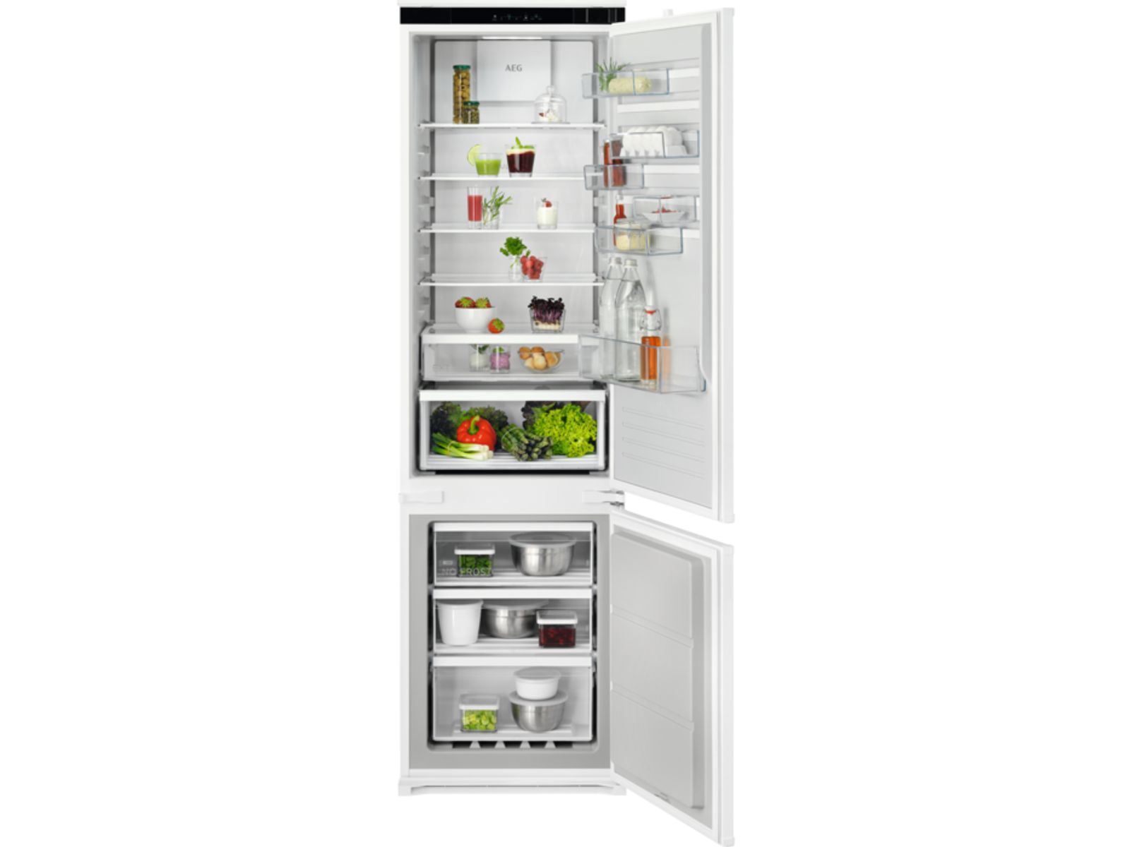 De MultiSpace-koelkast van AEG biedt meer capaciteit dan de standaarduitvoeringen door extra ruimte in de bovenzijde van het apparaat te integreren. En met een aanpasbaar interieur is deze koelkast de meest veelzijdige manier om etenswaren te bewaren.