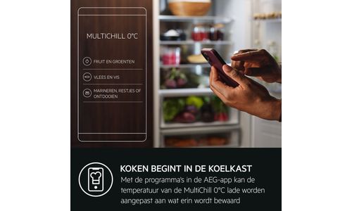 Programma's in de AEG-app stellen de MultiChill-lade in op de optimale temperatuur voor je ingrediënten. Dit ongeacht of je nu vlees of vis marineert, restjes bewaart of deeg een nacht laat rijzen voor perfect brood voor het ontbijt.