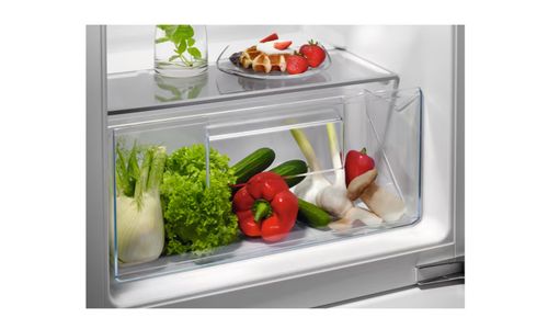 De OptiSpace koelkast biedt veel opbergmogelijkheden, met een overvloed aan ruimte tussen de schappen. De laden kunnen allemaal gemakkelijk losgemaakt en weer vastgemaakt worden, voor moeiteloos en handig opbergen.