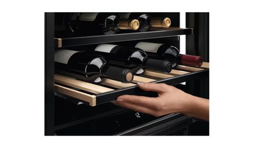 Perfect Shelving presenteert je wijncollectie op uittrekbare, kwalitatieve houten legplanken. Ontworpen voor optimale tussenruimte voor de meest voorkomende flessen van 750 ml, waaronder je favoriete champagne, zonder krassen op de labels te veroorzaken.